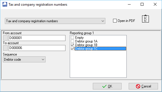 c)Reporting group 1 - Select a reporting group or more reporting groups. The report will only be printed for those customer accounts linked to the selected Customer reporting group 1.