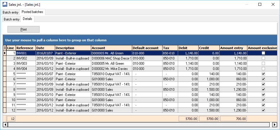 To view the details of the transactions in the selected journal, you may:- •Double-click on the selected journal. •On the Details tab, the transactions for the selected journal will be listed. (If you wish to print a list of the transactions in the posted journal, you may click on the Print button to print a Journal type - Posted journal report). |