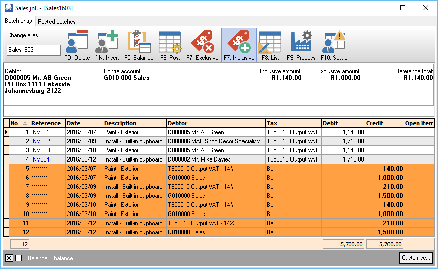8.Select a journal and click on the OK button. All the transactions in the selected, posted journal will be imported into the selected journal. An example, is as follows:
