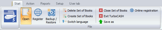 2.Register - Register the TurboCASH5 Program. Once you have registered TurboCASH5, and you restart the TurboCASH5 program, it will be removed from the Start tab on the ribbon bar.