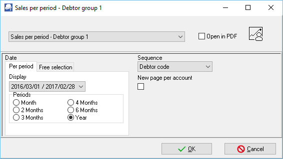 a)Report - Select the Sales per period - Customer group 1 (default), Sales per period - Customer group 2, Sales per period - Document group 1, Sales per period - Document group 2 or Sales per period - Salesperson report.