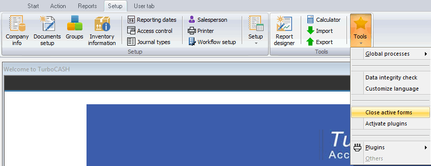 m)Plugins – Access available plugins / extensions to the TurboCASH5 program.