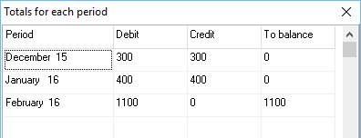 2.Select the Totals for each period option, and click on the OK button. The Totals for each Period screen is displayed: