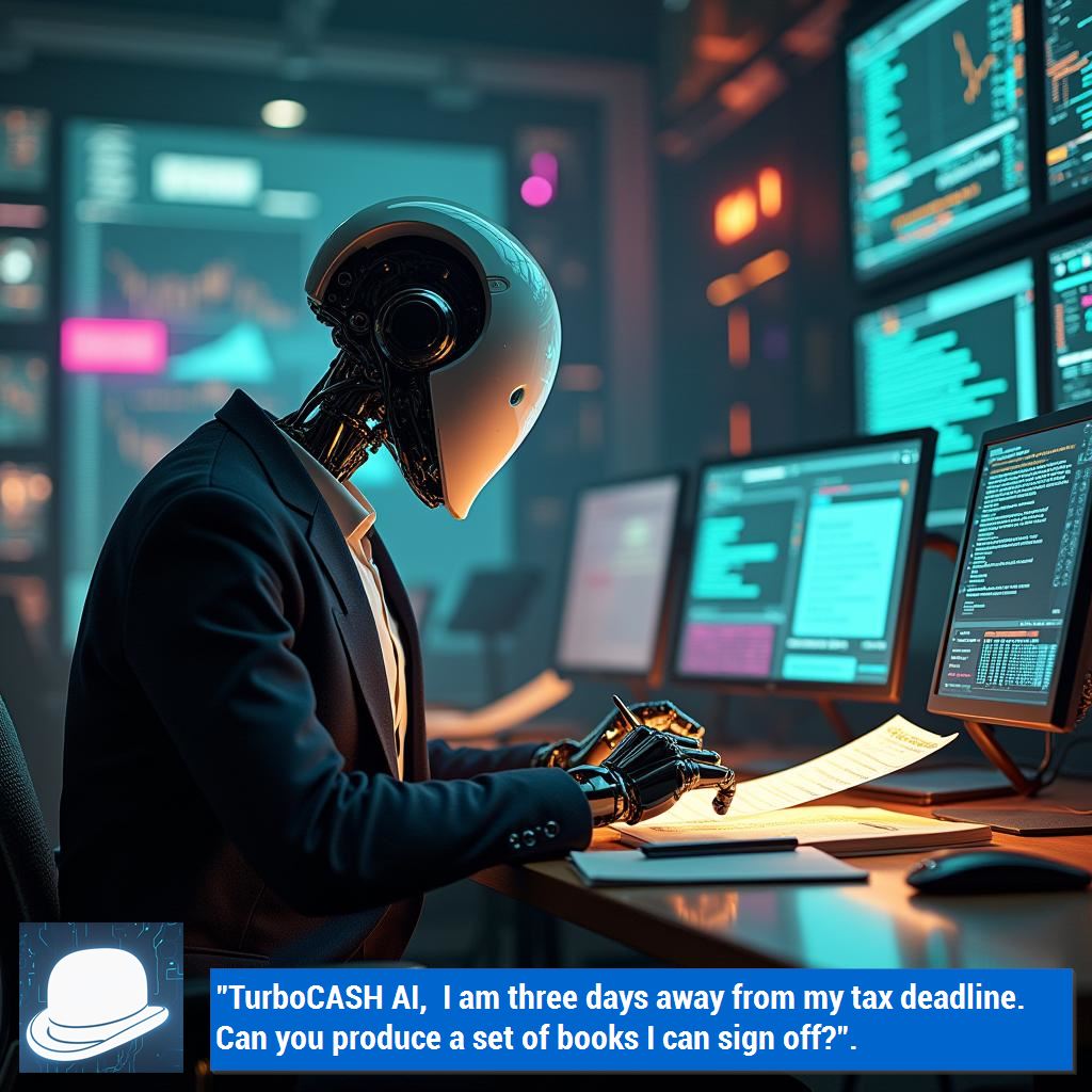 “TurboCASH AI, its three days to my tax deadline, can you please produce a set of books that I can sign off?”