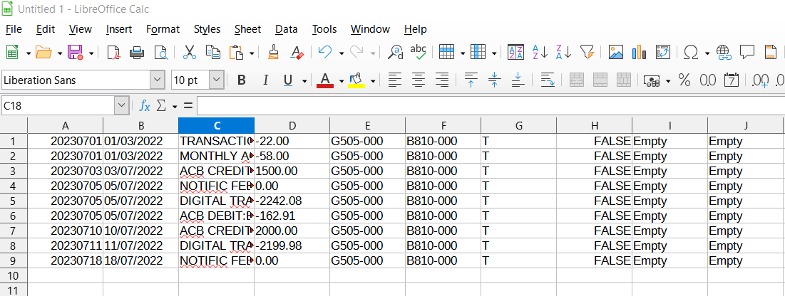 Here is an example of a #ABSACSV Bank downloaded in CSV format