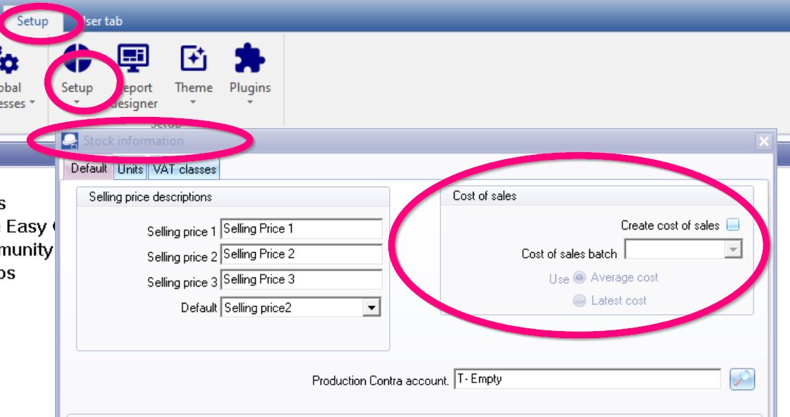 Before you start processing documents, you need to be absolutely sure that all settings for Stock items, Cost of sales and Documents are correct.